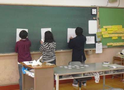 国語,社会,数学,理科,音楽,美術,体育,英語,育成に分かれての授業。1・2年生がやさしくサポートしていました。