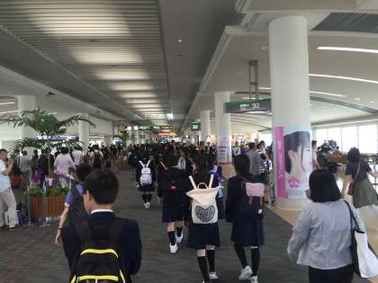 「西ノ京中学校様の修学旅行がよきものとなるよう…」というアナウンスがあり、生徒のみんなから自然と拍手が起きました。