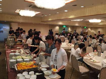 ただいま、夕食の真っ最中!バイキング形式で食べたいものを、食べられるだけ…。