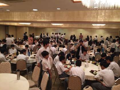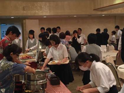 朝食は、バイキング形式で。エネルギーをたっぷり充填して、国際通りの班別研修に繰り出します。