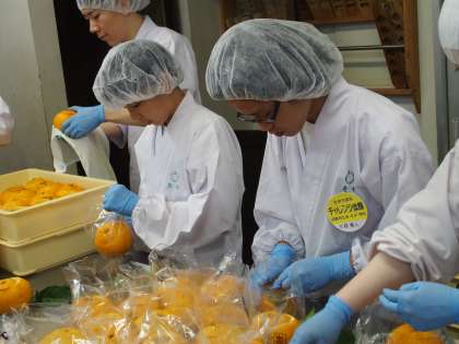 「夏柑糖」というお菓子を作るお手伝いをしています。本物のみかんをくり抜いて作るんですね。慎重に慎重に作業を進めていました。