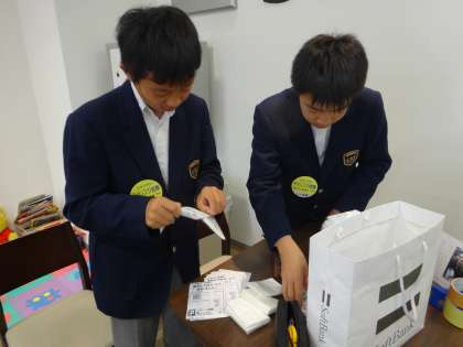 ティッシュの袋の中に、案内をひとつずつ入れていく。そんな作業を根気強く続けていました。粘りは宝です!!