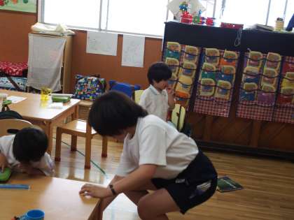 みんなが、真剣な面持ちで取り組んでいるのはミーティング。この基礎があるから、子どもたちとの時間が、安全で楽しいものになるのです。