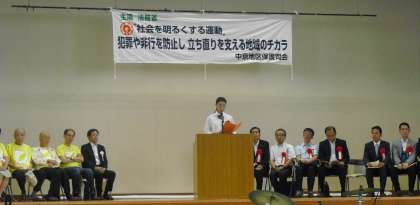 第1部では,開会あいさつなどの後,昨年度の社明の作文コンテストの入選作文の朗読が行われ,京都新聞賞に選ばれた本校生徒(現高1)がステージで自分の作文を発表しました。
