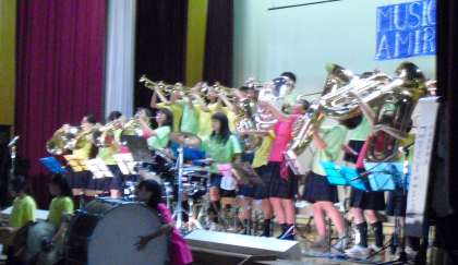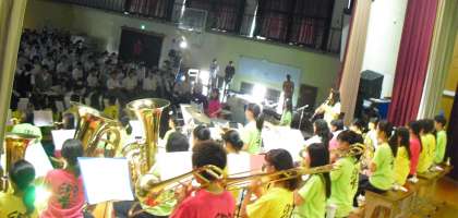舞台の部の最後は,吹奏楽部による「MUSIC IS A MIRROR」のステージ。おなじみのドラマや映画の主題曲や,夏のコンクールでの金賞受賞曲などを熱演しました。3年生はこのステージが最後の演奏。アンコールの曲の最後の音符まで心を込めてプレイしていました。