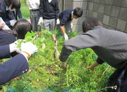まずは畑作りです。みんなで雑草を抜き、土を入れ、ほぐします。