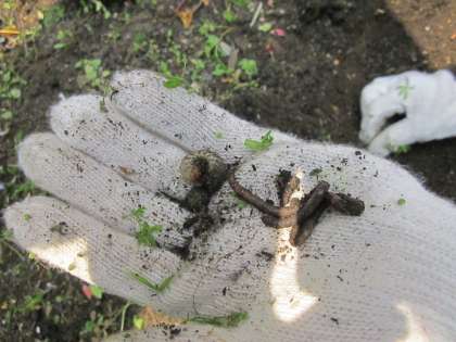 できるだけ素手で土の感触を確かめ、土中に酸素を送り込みます。この土には、牛糞なども含まれていて、かぐわしい香りもするのですが、「くっさーっ!」と言いながらもひるむことなくかき回していました。時折ミミズや幼虫を見つけたりという体験もできました。