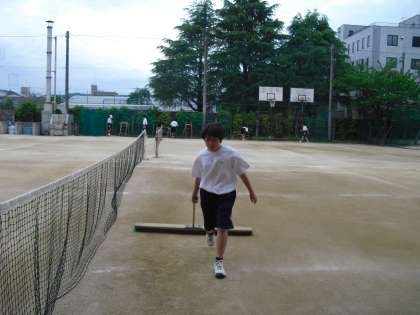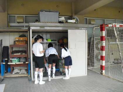 活動終了のチャイムが鳴ると、各部が後片付けを始めます。使った用具を数え、整備し、しまいます。同時に、使った場所(コートやフロア・道場・教室)を整えます。