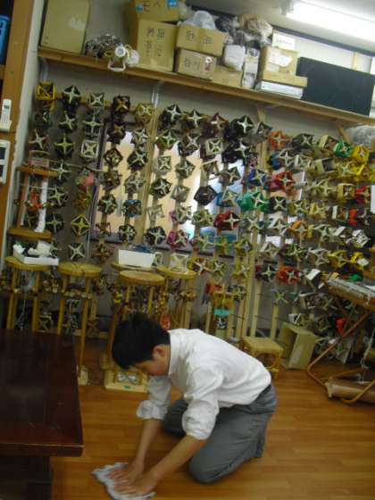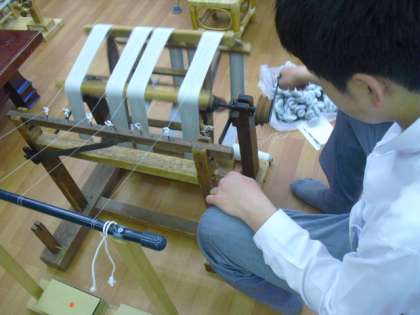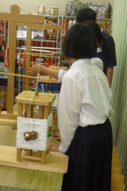 カウンターと にらめっこしながら1000回間違いなく糸を巻いたり、組みひも体験に訪れた他府県からの修学旅行生の指導をしたり…。