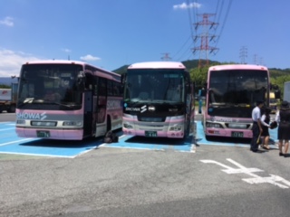 バスが、基山PAに着きました。ここで、お待ちかねのお昼ご飯を食べます。早起きして用意してくださったお家の方に感謝して、「いただきます!」