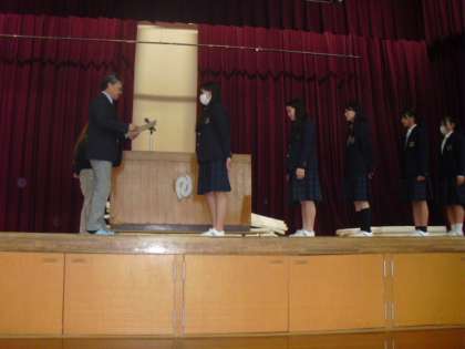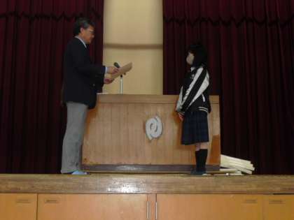 終業式の前に、スポーツ・文化・芸術など様々な分野で活躍し、優秀な成績を残してくれたので、表彰式を行いました。嬉しいことに式の時間が長くなるほど、多くの人が様々な分野で受賞しました。校長先生から賞状を受け取り、全校生徒から拍手を受けている表情が照れくさそうにしている人が多かったですが、誇らしげにも見えました。受賞されたみなさんおめでとうございます!!