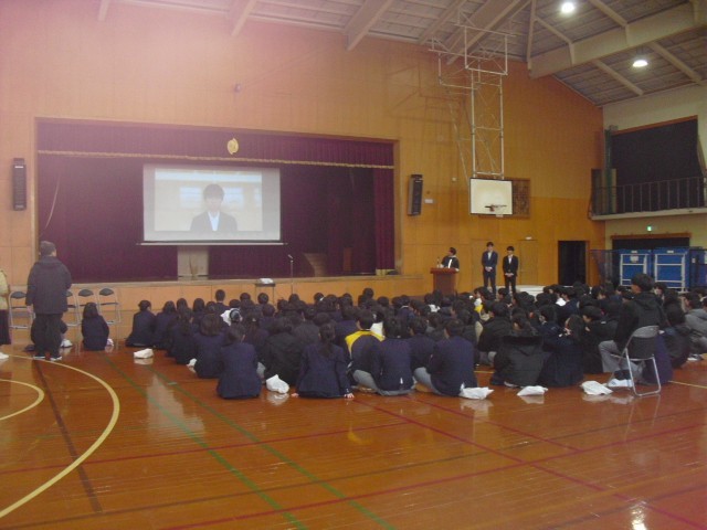 5限の学年集会で修学旅行の行き先が発表になりました。
