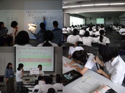 この授業は中学一年生を対象とした講座で、電気の通り道や家庭用機器の消費電力の比較などから省エネに対する考えや、お家でのルールの発表など持続可能な事を念頭に初歩的な題材に終始した内容でした。どの生徒も熱心に取り組んでいました。