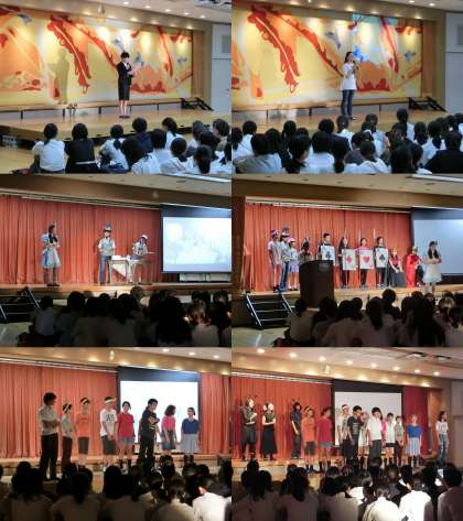 2年生は、EP-Aの取組で、学年を5つのグループに分けて、劇を演じました。キャストも他のスタッフも一同、今日のこの日のために、一生懸命練習してきました。それぞれ、精一杯やりきってくれたと思います。また、幕間では、劇の感想を聞くインタビューもあり、それぞれの内容を印象づけることができました。2年生の発表全体を通して、時間が過ぎるのが、とても早く感じました。今年のこの経験をいかして、来年もさらに、パワーアップしてくれればと思います。