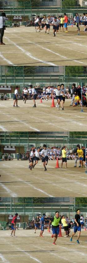 中学1年から順々に高校3年まで、バトンを繋ぎます。今年も教職員チームも参加しました。竹田校長先生も、第1走者として元気な走りを披露されました!!