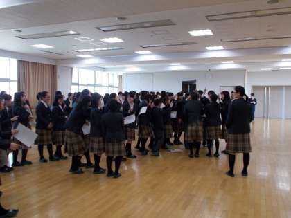 12日に予定されている「新入生を迎える会」。期待より大きな不安を抱えて入学してきた自分たちを振り返り、なんとか順調なスタートを切って欲しい!という代表委員たちの思いのつまった迎える会の2年生の発表。代表委員以外の生徒たちも不安を取り除いてあげたいという思いは同じなので、代表委員の指揮のもと盛り上がって練習をしました。これで今年の1年生も安心して、西京での生活を楽しむことができますね?!