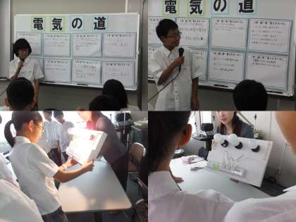 この授業は、毎日の生活に欠かせない「電気」はどこで作られ、どのような経路で家庭まで届けられているか、そして地球温暖化問題のために一人ひとりがどのような省エネに対して行動を起こせるか等を考えました。