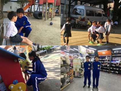 午前中の前半は,自由に遊ぶ時間です。砂や遊具で遊んだり,ドッジボールをしたりと休むことを知らない園児さんに笑顔でついていってます。