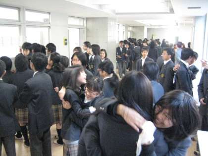 今朝8時15分,2・3年生の教室前に一斉に新しい学級名簿が発表されました。沸き起こる歓声とどよめき! 抱き合って喜ぶ生徒の姿が印象的でした。
