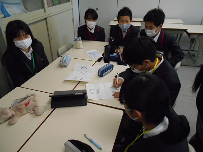 例年はメモリアルホールに全校生徒が集まり,車座になって交流をしていましたが,今年度は新型コロナウィルスの感染症対策のため,各教室でたてわりのメンバーが集まるかたちで行われました。