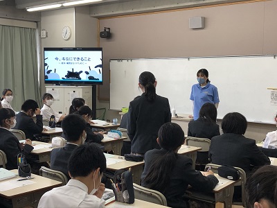 学校でも感染予防対策を続けていきますが,新型コロナウイルス感染症には誰もがかかる可能性があることを前提に,身近な誰かが感染してしまったことを考慮した対応も必要です。そこで,日本赤十字社監修の「新型コロナウイルスがもたらす3つの”感染症”」の考え方をもとに,新型コロナウイルス感染症に関する差別・偏見について考える授業を実施しました。京大Moodleの保護者連絡用コースに関連文書を掲載しておりますので,ご確認ください。
