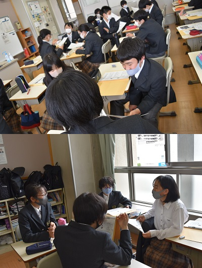 今日のテーマは,「きちんと伝えよう」でした。みなさんは誰かに何かを頼んだり,頼みや誘いを断ったりすることは得意ですか。本当は誰かにお願い事をしたいのに,上手く言えずに自分ひとりで抱えることになったり,本当は断りたい誘いを,上手く断れずに参加したりしたことは,誰しも経験があるのではないでしょうか。相手との関係を大切にするために,自分の本当の気持ちを言わないことは,自分だけに嫌な気持ちが残ってしまい,良いこととは言えません。