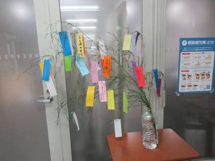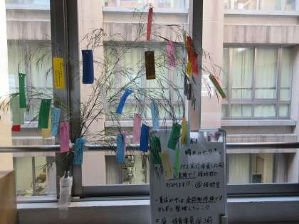HR教室のある階には、願い事を書いた短冊がいくつもつるされています。