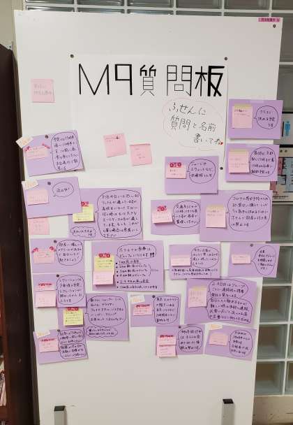 すべてが俎上にあがり、最終確認まであと少し。気合を入れて頑張っていきましょう。いろいろな質問が上がり、それに実行委員が対応しています。また東京の色々な名所や昼食場所なども紹介され、2階廊下はM9一色です。