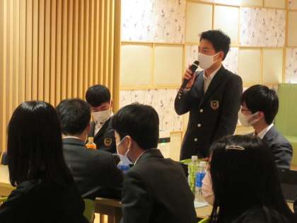 このあと、今日は講演会です。その前に昨日の国際交流や今日の企業訪問の振り返りを全体でおこなっています。