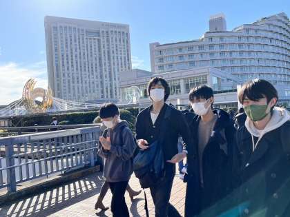 後ろに見えるアールを描く建物が、お世話になったホテルです。