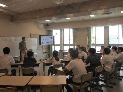 3年生は、2時間目から英語科の授業で「国際理解プログラム(PICNIK)」を行いました。京都市国際交流協会からアゼルバイジャン、フランス、中国からの留学生の方が来てくださり、各クラス二つのグループに分かれて英語による自己紹介や国紹介、文化の違いを行ってくださいました。プレゼンテーションが進むにつれ、留学生の方からの質問が出たり、それに英語で答えたり、自分たちから質問したりと、日ごろの英語の学習が役に立っていました。東京FWでは、大学を訪問した際、留学生の方と意見交流を英語で行います。国際交流を通じて多様な価値観に触れるとともに、コミュニケーション力を伸長させ、自身が伸ばしたい力や能力を見極めてほしいと思います。