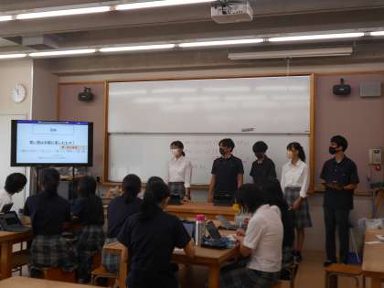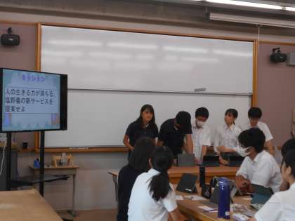 3限に3B、4限に3A、5限に3Cで、M7(イノベーションタイム)の中間報告会を行いました。クラスと技術室の2部屋にグループごとに分かれて、教育と探求社の松岡様から本番につながるコメントを各グループいただきました。前回の中間報告会からミッションをもう一度考え直し、新たな提案を考えているグループがほとんどでした。松岡様が本番に向けて「最初のグループ内でのディスカッションでは、斬新なアイディアが出てきていたのではないか。もっと生徒さんの本音が聞きたい!殻を破ろう!」と言葉を残して帰られました。限られた時間ですが、さらなるブラッシュアップをして本番を迎えましょう!!!