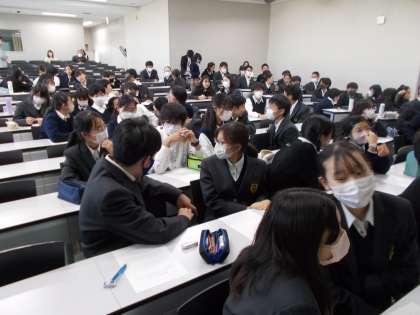 ・西京の学びについて、改めて知ることができたし、話の流れもスムーズで、最初に先生が言っていた通り、終わった時には、「もう終わり!?」となりました。100万分の1の存在の話を聞いたときは難しいと思ったけど、100分の1の才能が三つあれば良いという発想に驚きました。このような奇想天外な発想を自分もできるようになりたいと思いました。