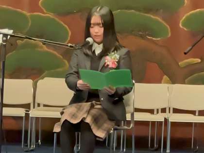 今年のテーマは「かなで綴られた日記文学」で、放送部員がそれぞれ課題作品である「土佐日記」「蜻蛉日記」「紫式部日記」「更級日記」の中から1つを選び、朗読を録音し応募をしました。今年度は中学・高校生部門に全国から230名の応募があったそうです。その中で、本校3年生のK.RさんとN.Sさんが一次・二次のテープ審査を通過し、最終審査会へと進む3名の中に選出されました。