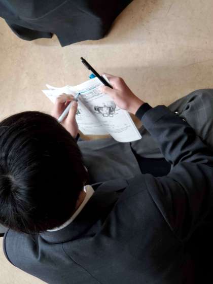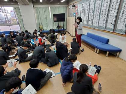 7日(木)の7時間目に1階ギャラリーでM9東京フィールドワークのしおりの中の工程の読み合わせを行いました。松永先生から注意事項や気を付けることについての話があった時は自己判断をしてメモをして聴いていました。終学活では、手荷物タグの準備をしたり、明日の6時間目には新幹線の乗車隊形の練習があります。各自、しおりをしっかりと見て確認をしておきましょう。