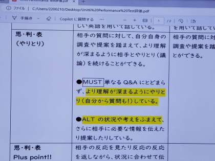 プレゼンの準備が進んでいます。仲間やALTに伝えるため、より分かりやすい英語を表現をチョイスしています。理解が深まるためのやり取りができるのか。スライドに頼り切らず、自分の英語力をフル活用して、思いを伝えてください。