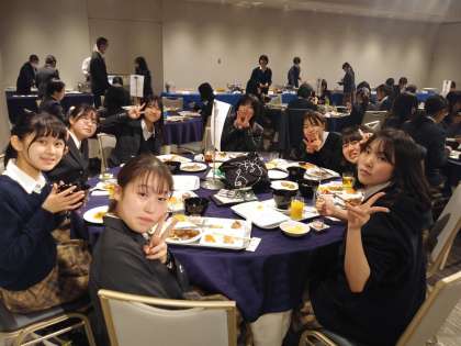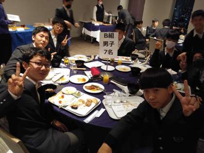 今日東京散策で経験したことを交流しているのでしょうか。みんな楽しそうな表情です。今日はこの後、卒業生とのグループディスカッションがあります。目一杯、研修旅行を楽しんでください。