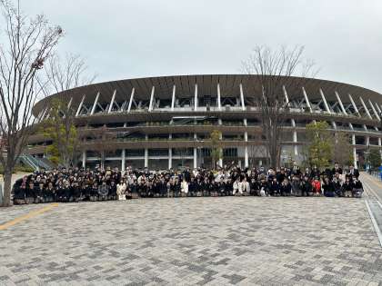 国立競技場の前でパシャリ。東京オリンピックがずいぶん昔のように感じます。