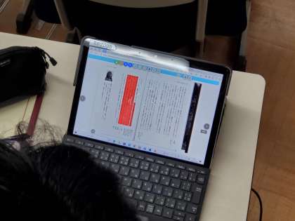 第29回NIE全国大会が今夏にあり、本校も参加します。その一環として、授業公開を行いました。本校では、新聞という媒体を通して、様々な情報から作品の背景理解を広げ、対話を通して読みを深める力を付けることができるのではと仮説を立て、研究・実践を進めてきました。翻字においても、文学作品(随筆)を学習することにおいて、新聞記事を参考材料として読むことが、文学作品の読みを深めることにつながっていると実感しました。多くの方に参観・取材に来ていただきありがとうございました。研究成果については全国大会にて報告できればと思います。