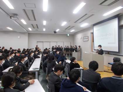 個人→グループで振り返った先週の内容を踏まえて、今日は学年集会の形でM3の振り返りを行いました。各演目のリーダーたちからは、それぞれのグループの良かった点や反省点が全体に報告され、保護者の方からの感想も紹介されました。「成長した姿を見ることができた!」「クオリティが高かったです!」本当にうれしいですね!みんなも達成感を感じることができたと思います。その後は来年度のM4—6(京都インターンシップ)、M5(文化の部舞台発表)の概要を聞いた上で、これからの自分たちに必要となるチカラについて、意見交換をしました。企画力や行動力、チャレンジする力、困難にも負けないレジリエンス(しなやかさ)等、いろいろなチカラがありますが、どれも校是である進取・敢為・独創に結びつくものです。