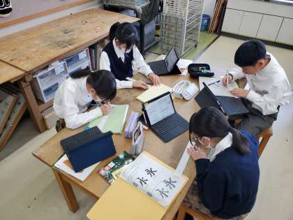 文字のもつ特徴、美しい文字のバランスを理解し、レタリングの技術を身につける。「永」の文字で学んだ知識・技能を、自分の名前に落とし込み、美しい作品が仕上がることを期待しています。デジタル化が進む中においても、手書きの良さや文字の美しさは必要な感性・教養です。ぜひとも、スキルアップしてください。