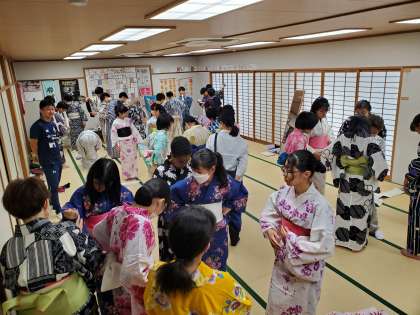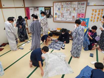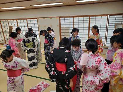本校では例年の取組ではありますが、日常で和装に身を包む機会がめっきりなくなってきました。今日の体験で和装に関心を持った人は、ぜひ別の機会で和装に挑戦して下さい。また、今日の体験が他の伝統文化への橋渡しにもなってほしいと思います。