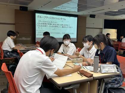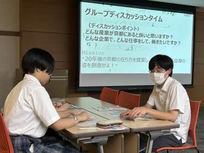 各企業でワークショップが始まっています。こちらでは「どんな産業が京都にあると思いますか?」「どんな企業でどんな仕事をして働きたいですか?」をテーマに話し合っています。