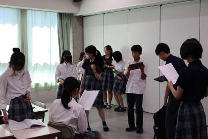 9月の西京祭で披露するM8舞台発表の取り組みが盛り上がってきました。5本の脚本ごとに25名前後のチームに分かれ、監督と脚本家が中心となって演技指導をしています。また、大道具や小道具、音響なども創意工夫を凝らしながら作成していますね。英語、平和、友情、コメディ、社会問題など脚本のジャンルも多岐にわたり、19期生の気合いが伝わってきます。実行委員会で決定したM8のスローガンは「aMAZIng」。M7、M8、M9の実行委員会が同時に活動している忙しい3年生ですが、真剣(MAZI)に、驚くべき(amazing)劇を「魅」せてくれることを期待します!
