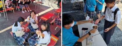 土曜日にもかかわらず多くの中学生が来校し文化の部を楽しんでいます。事前に買ったチケットを握りしめ、高校3年生の模擬店に並んでいました。また、食事処では友達どうしでおいしそうにほおばってました。たこやき、ホットドッグ、揚げポテト、焼きそば、ポップコーンなどなど、どれもこれも工夫豊かで魅力的です。