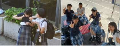 今日も快晴でした。この3日間本当に天気が良く、文化の部日和です。当日券もあり、高校生は呼び込みに熱が入っていました。中庭から駐車場まで7クラスが模擬店を出しています。生徒たちは「チーズボール」「チュロス」など熱々を汗をかきながら食べています。作っている高校生も大変ですが、頑張って下さい!