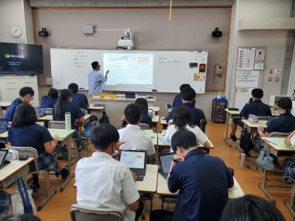 2年の数学はデータの活用に入りました。気象庁のデータを取り出し、エクセルで処理するとともに、スグラパ(https://sgrapa.com/)というアプリを活用して、複数の箱ひげ図を作成しました。箱ひげ図は複数のデータを比較するときにとても役立ちます。今回は、ある地点での気象データ(最高気温)の推移を扱いました。年次推移の傾向をみとったり、2地点を比較したり、個々で目的に応じた資料を作成しました。次の授業では、作成した資料からどのようなことが読み取れるのか、どのような工夫をすれば読み取りやすくなるのかなど議論していきます。