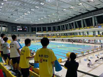 9月15日、アクアリーナで、秋季大会水泳競技の部が行われました。初めて大会に出る選手も何人もいて緊張した様子でしたが、皆健闘しました。自己ベスト更新もたくさん見られました。泳ぎ終わって応援席に戻ってくるときの笑顔と仲間の声がけがとても微笑ましかったです。いいチームに育ってきました。こういう雰囲気が練習の質を高め、試合の緊張を支え、良い結果につながっているのでしょう。今後のさらなる成長が楽しみです。