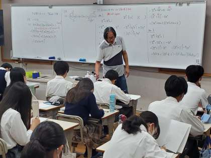 2年生と3年生が今それぞれ因数分解を習っています。2年生は因数分解の基礎的な理解から一定の技能を付ける段階です。2項x^2-9から、3項x^2+3x-15に続き、4項xy+x+y+1の因数分解へと、少しずつ工夫が必要になってきました。この後、5項、6項と進み、たすき掛けや置替え、4次式、複二次式など複雑になってきます。一方、3年生はそれらを思い出しつつ、3次式や式のたすき掛け、3元(a+b)(b+c)(c+a)+abcの因数分解に挑戦します。因数分解は解けたときある種爽快さを感じませんか。問題はSTEPやサクシード、チャートだけでなく、ネットにもたくさんあります。究めようと思う人は、どんどん上を目指して下さい。因数分解を切り口に、数学の沼にはまってみてください。