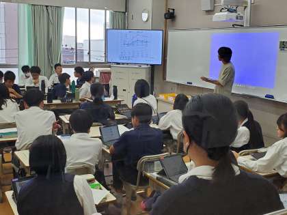 東京一極集中について、ディベートを行いました。準備してきた資料をもとに、議論を交わします。図や表など根拠をもって意見を述べると説得力が増します。たくさん知識を持っていることは大切ですが、人に伝えるときの一つの方法として、目的に応じたわかりやすいを提示することは、効果的なテクニックです。プレゼンのスキルは個々からまだまだ磨きがかかっていきます。1回1回の授業での実践を大切にしていきましょう。